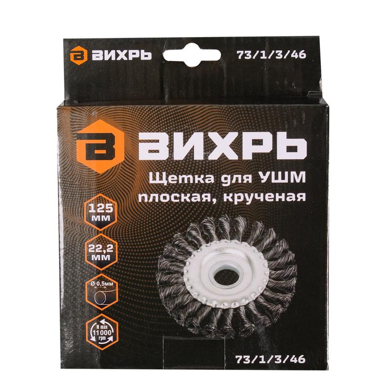 Щетка для УШМ плоская крученая 125мм Вихрь 73/1/3/46