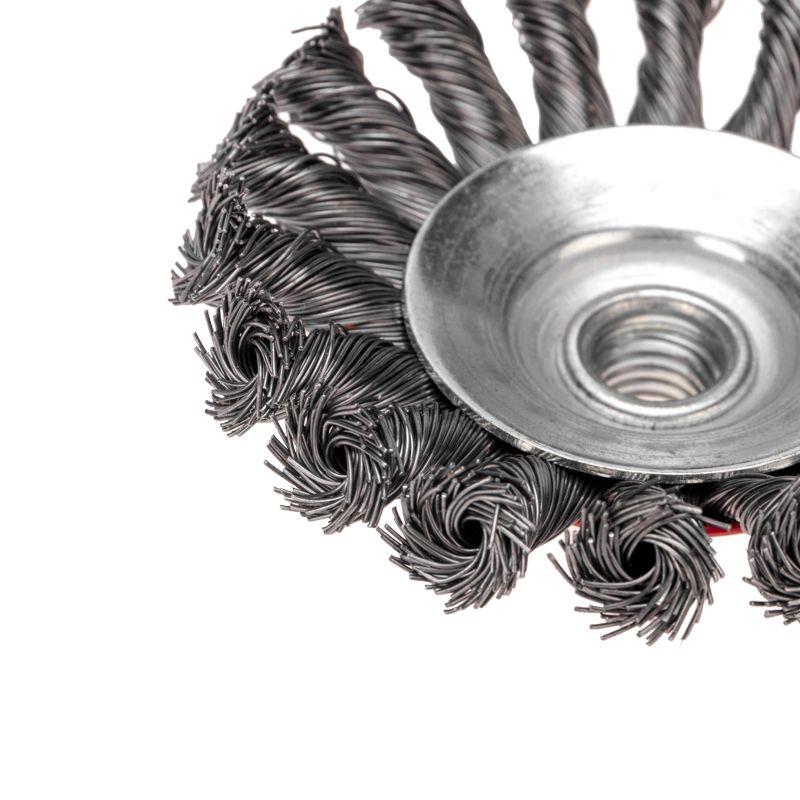 Щетка коническая для УШМ крученая стальная проволока 100мм М14 Kranz KR-91-1201