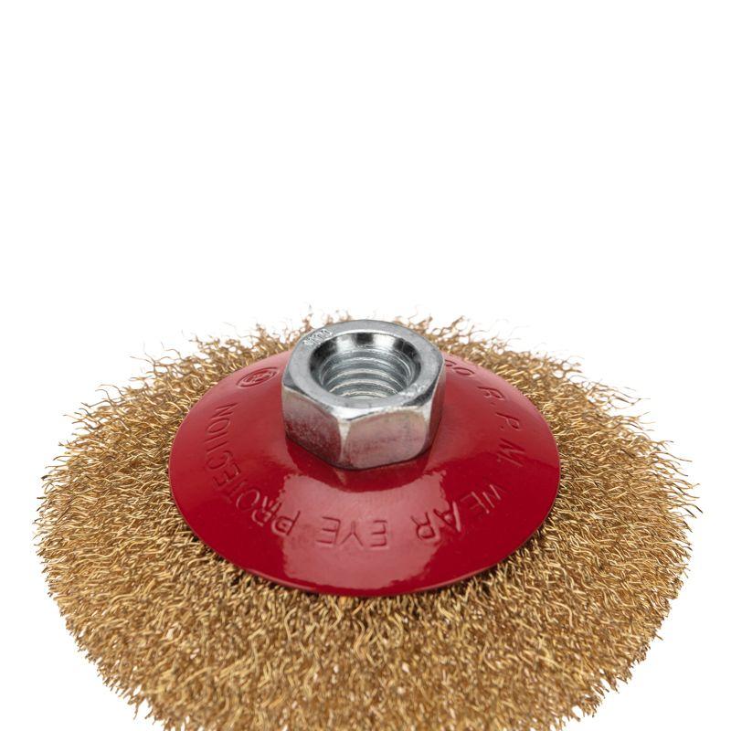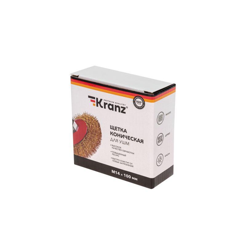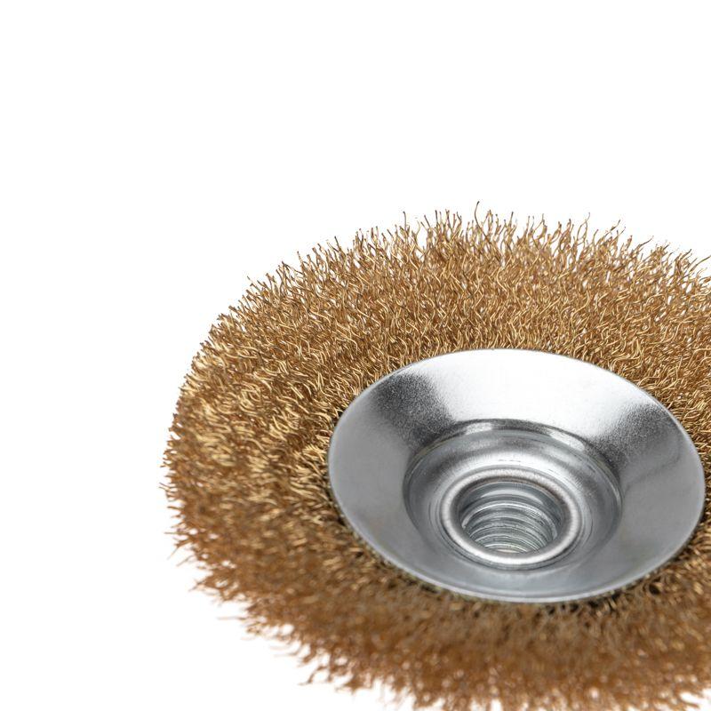 Щетка коническая для УШМ витая латунированная проволока 100мм М14 Kranz KR-91-1205