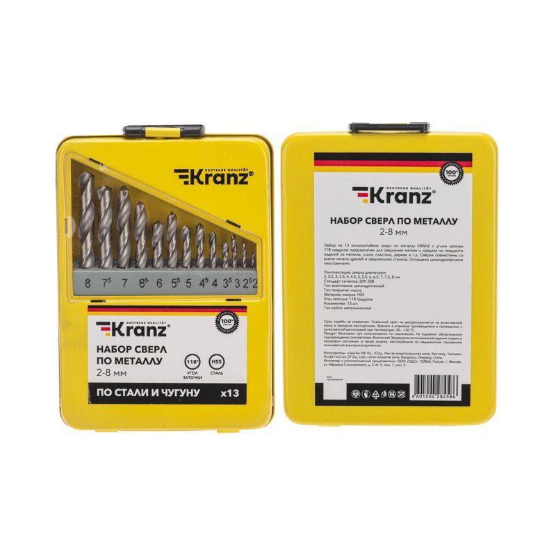 Набор сверл по металлу 2-8мм (через 0.5мм) HSS цилиндрический хвостовик метал. кейс (уп.13шт) Kranz KR-91-0639