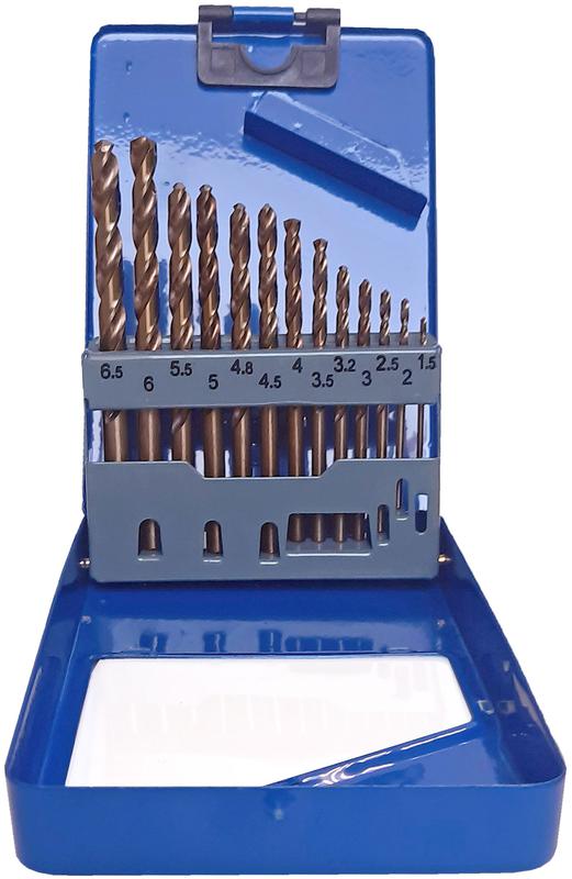 Набор сверл по металлу Profi 1.5-6.5мм (через 0.5мм + 32мм; 48мм) (13шт) с кобальтом 5ти-проц. в метал. коробке Cutop 48-601