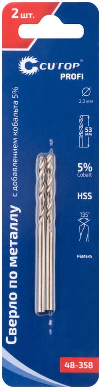 Набор сверл по металлу Profi 2.3х53мм с кобальтом 5ти-проц. (уп.2шт) Cutop 48-358
