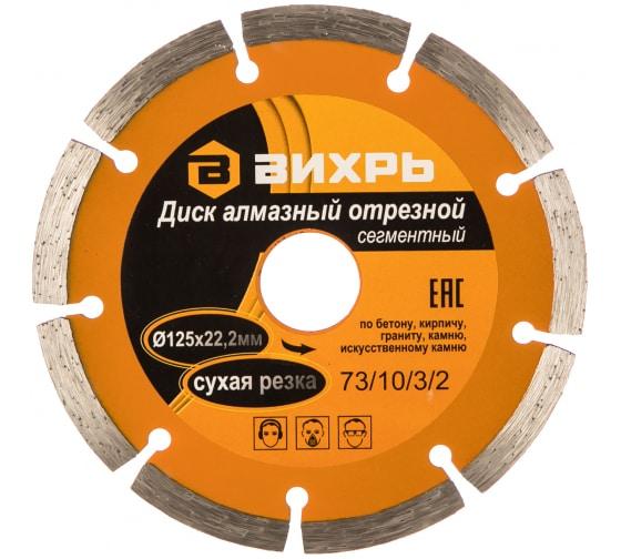 Диск алмазный отрезной сегментный 125х22.2ммсухая резка Вихрь 73/10/3/2