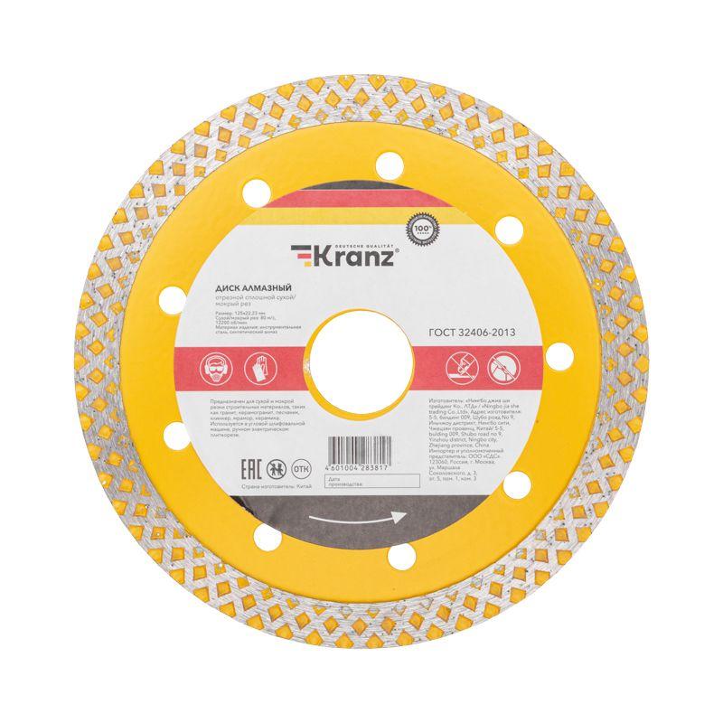 Диск отрезной алмазный сплошной 125х22.2мм KRANZ KR-90-0116