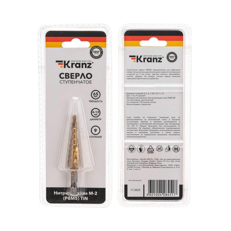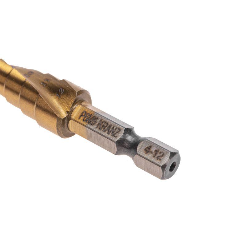 Сверло ступенчатое 4-5-6-7-8-9-10-11-12мм Р6М5 ТИТАН шестигр. хвостовик Kranz KR-12-6615