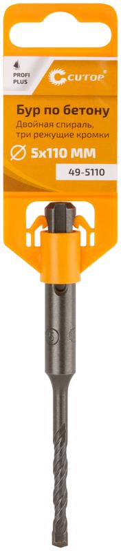 Бур по бетону Profi Plus - двойная спираль три пылеотводящие кромки 5х110мм Cutop 49-5110