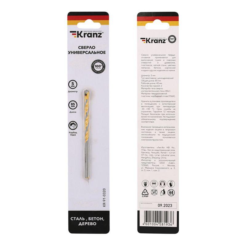Сверло универсальное твердосплавное 5мм Kranz KR-91-0320