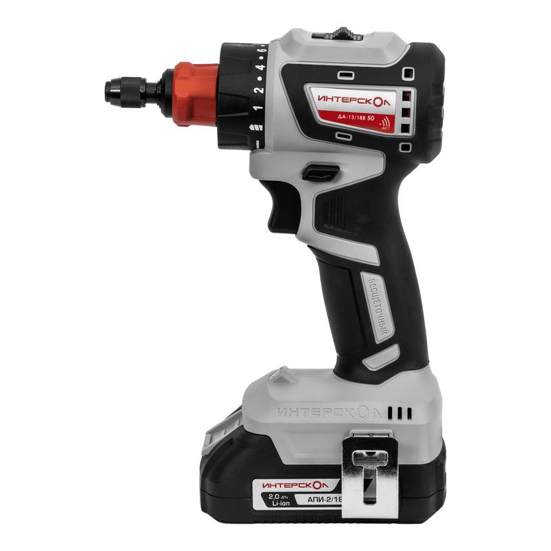 Дрель-шуруповерт аккумуляторная бесщеточн. ДА-13/18В 50 комби АПИ (Li-ion кейс 2 аккум. 2А.ч 4 насадки) ИНТЕРСКОЛ 776.2.2.79