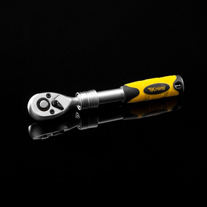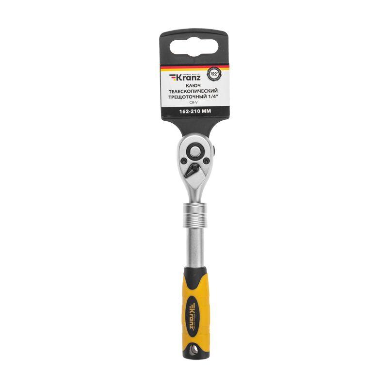 Ключ телескопический трещоточный 1/4 162-210мм CrV двухкомпонентн. рукоятка Kranz KR-12-8413