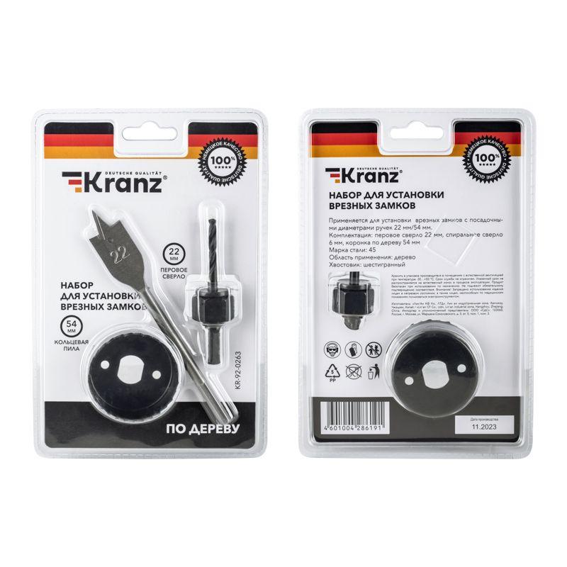Набор для установки врезных замков 22мм/54мм (перовое сверло/кольцевая пила) Kranz KR-92-0263