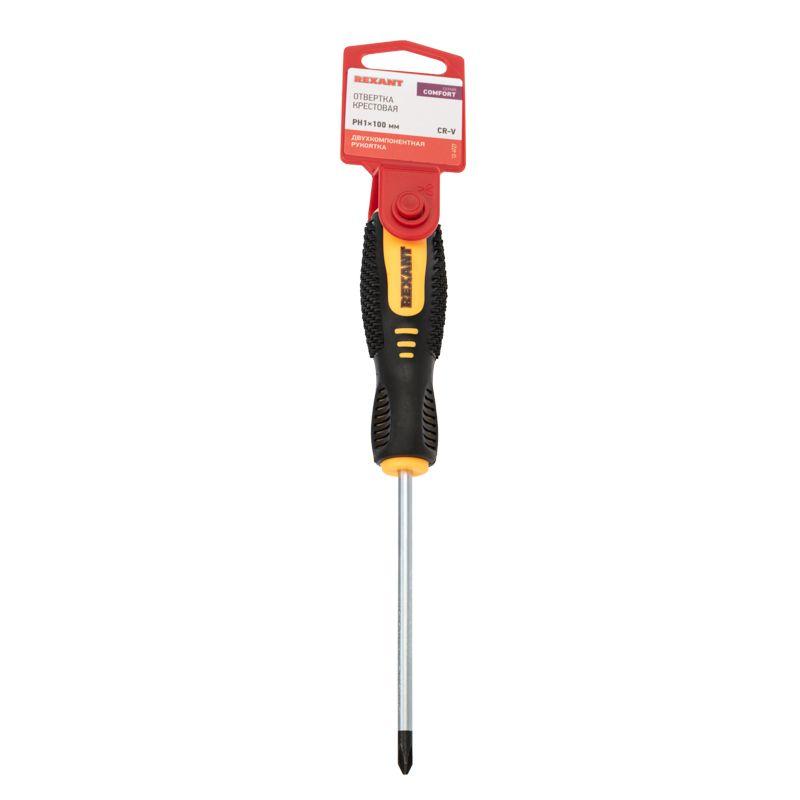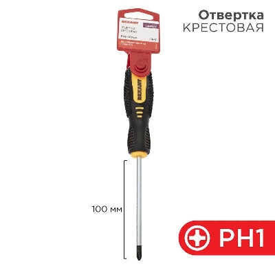 Отвертка крестовая PH 1х100мм двухкомпонентная рукоятка Rexant 12-4727