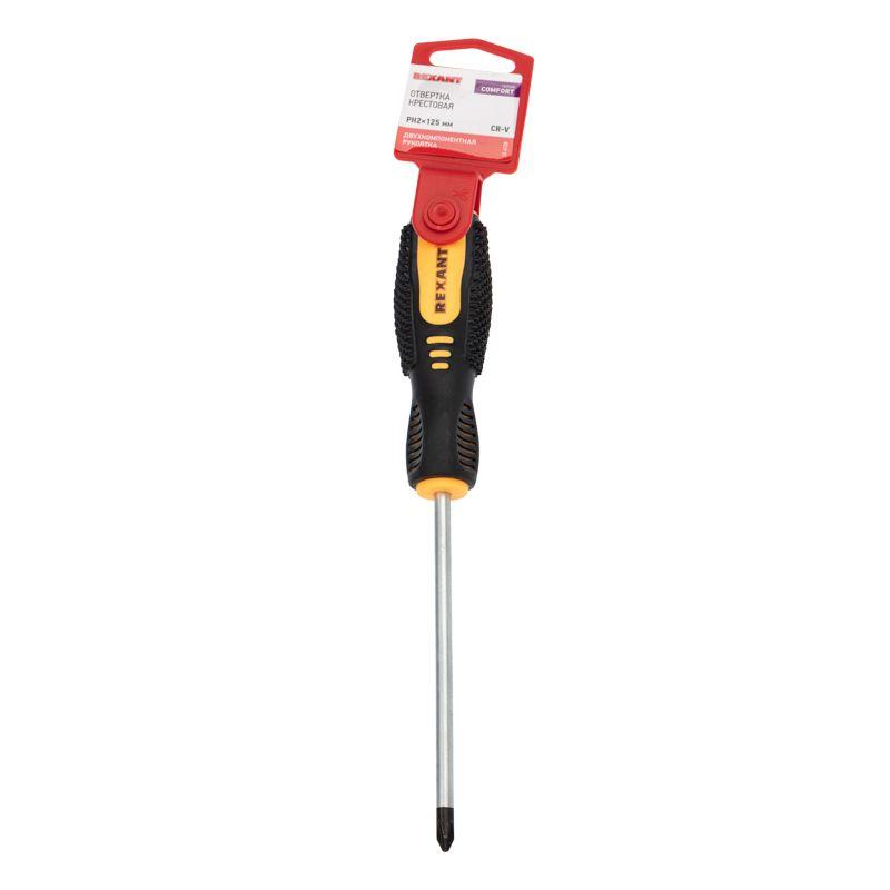 Отвертка крестовая PH 2х125мм двухкомпонентная рукоятка Rexant 12-4728