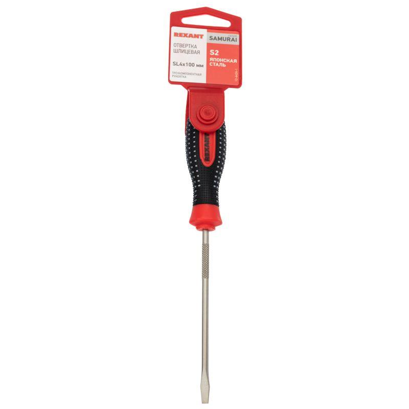 Отвертка шлицевая SL 4х100мм трехкомпонентная рукоятка сталь S2 Rexant 12-6424-1
