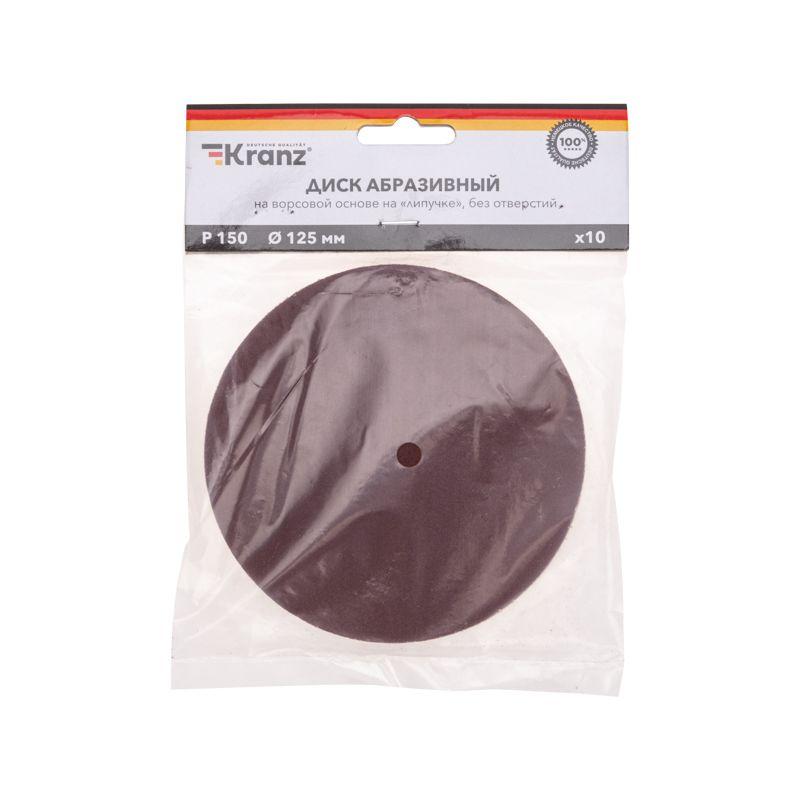 Диск абразивный на ворсовой основе на липучке без отверстий P150 125мм (уп.10шт) Kranz KR-91-1149