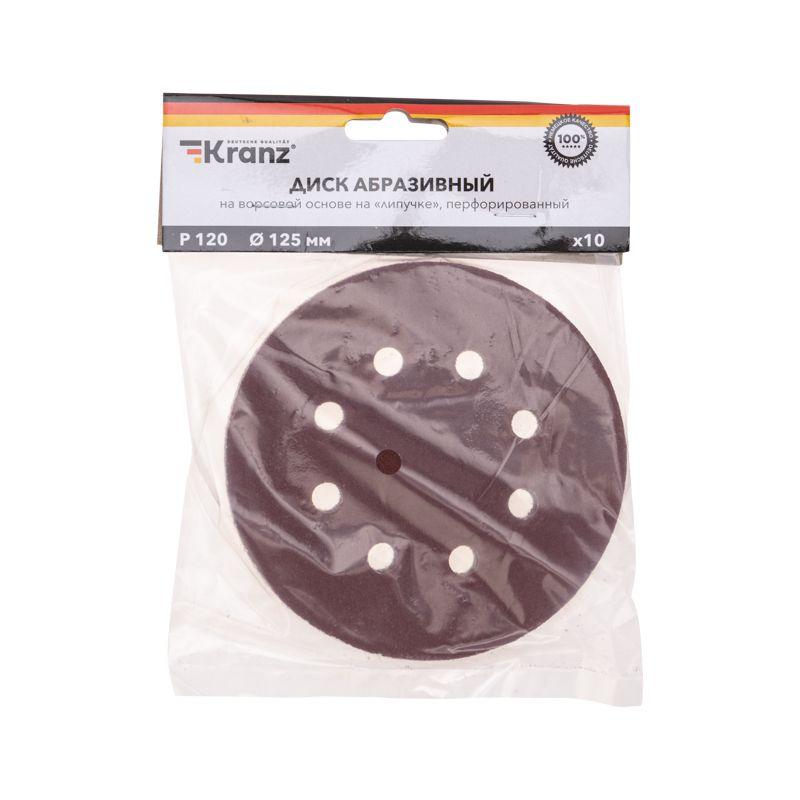 Диск абразивный на ворсовой основе на липучке перфорированный P120 125мм (уп.10шт) Kranz KR-91-1168