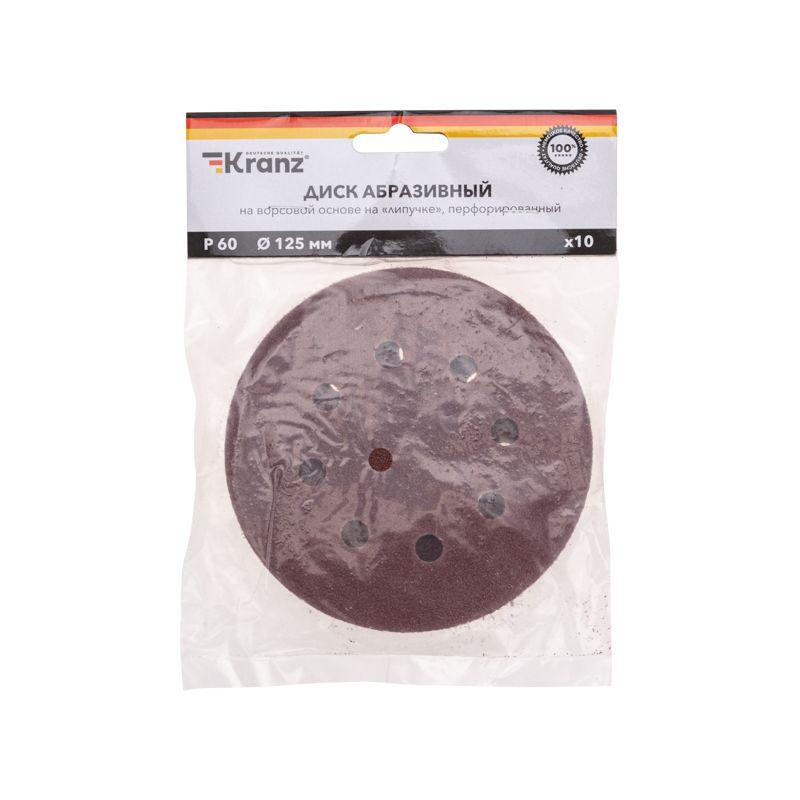 Диск абразивный на ворсовой основе на липучке перфорированный P60 125мм (уп.10шт) Kranz KR-91-1165