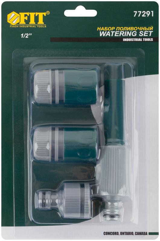 Набор поливочный 4шт 1/2дюйм ( насадка для полива; соединитель; соединитель с автостопом; адаптер внешний ) FIT 77291
