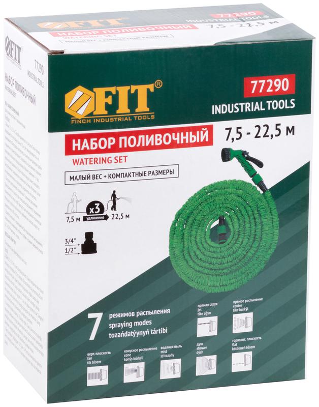 Набор поливочный (шланг растягивающийся 7.5-22.5м и пистолет для полива 7 режимов ) FIT 77290