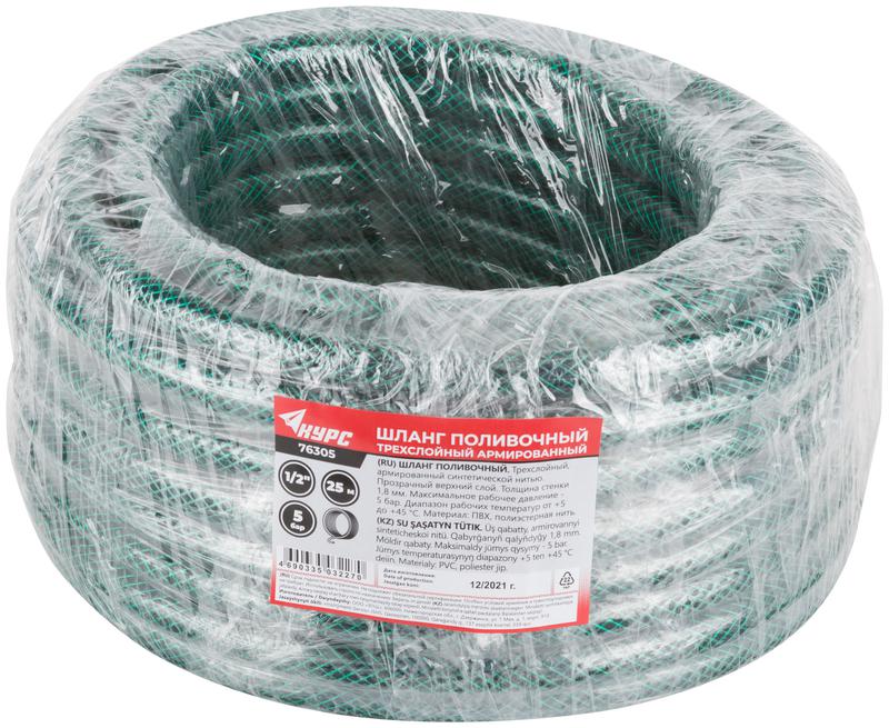 Шланг поливочный трехслойный армированный 1/2дюймх1.8ммх25м зел. КУРС 76305