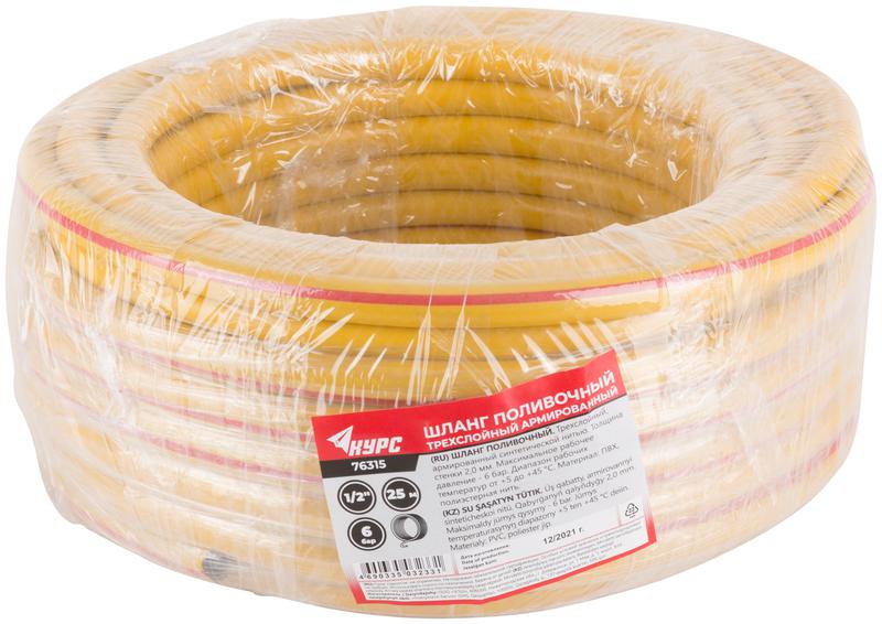 Шланг поливочный трехслойный армированный 1/2дюймх2.0ммх25м желт. КУРС 76315