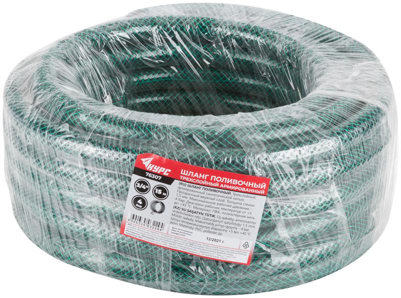 Шланг поливочный трехслойный армированный 3/4дюймх1.5ммх15м зел. КУРС 76307