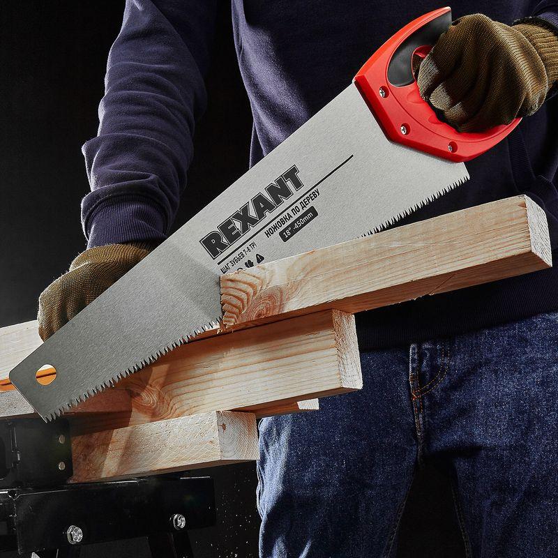 Ножовка по дереву "Зубец" 450мм 7-8 TPI каленый зуб 2D двухкомпонентн. рукоятка Rexant 12-8214