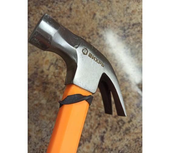 Молоток - гвоздодер 450г фиберглассовая двухкомпонентная ручка с магнитом Вихрь 73/6/8/8