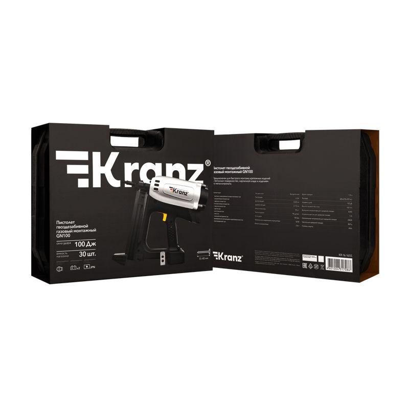 Пистолет гвоздезабивной газовый монтажный GN100 100Дж длина гвоздей 15-40мм d2.7-3мм KRANZ KR-16-1655