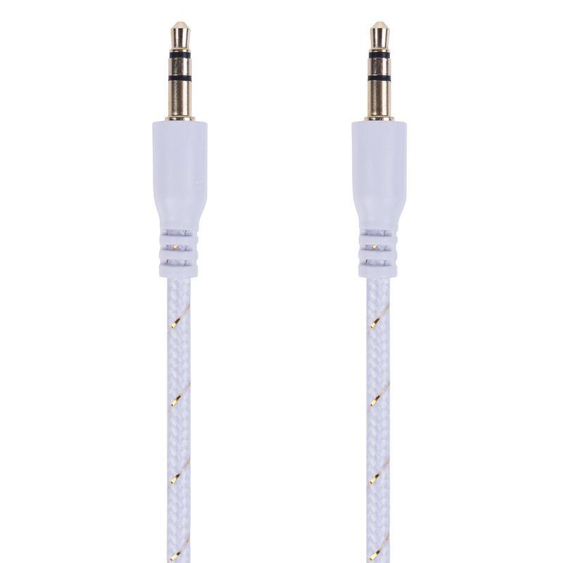 Кабель аудио AUX 3.5мм в тканевой оплетке 1м бел. Rexant 18-4070