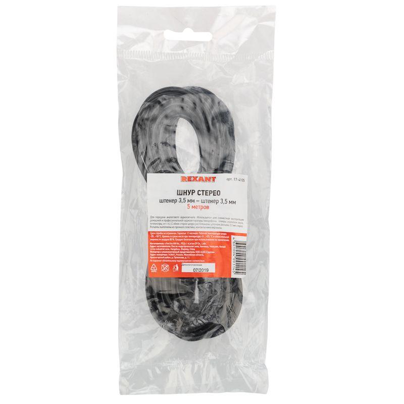 Шнур 3.5мм штекер стерео-3.5мм штекер стерео 5м Rexant 17-4105
