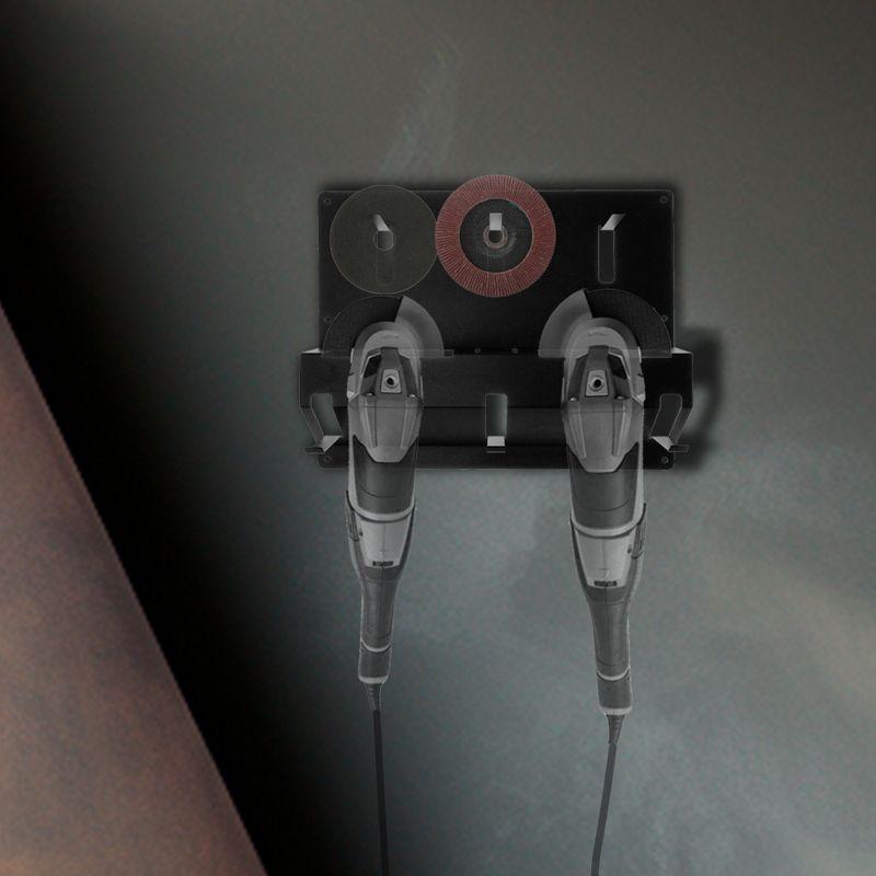 Держатель для угловых шлифмашинок и отрезных дисков настенный с крючками черн. Rexant 38-0665