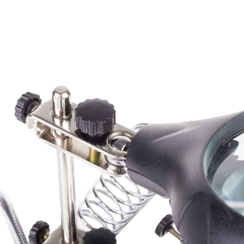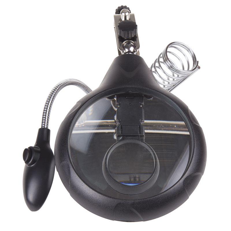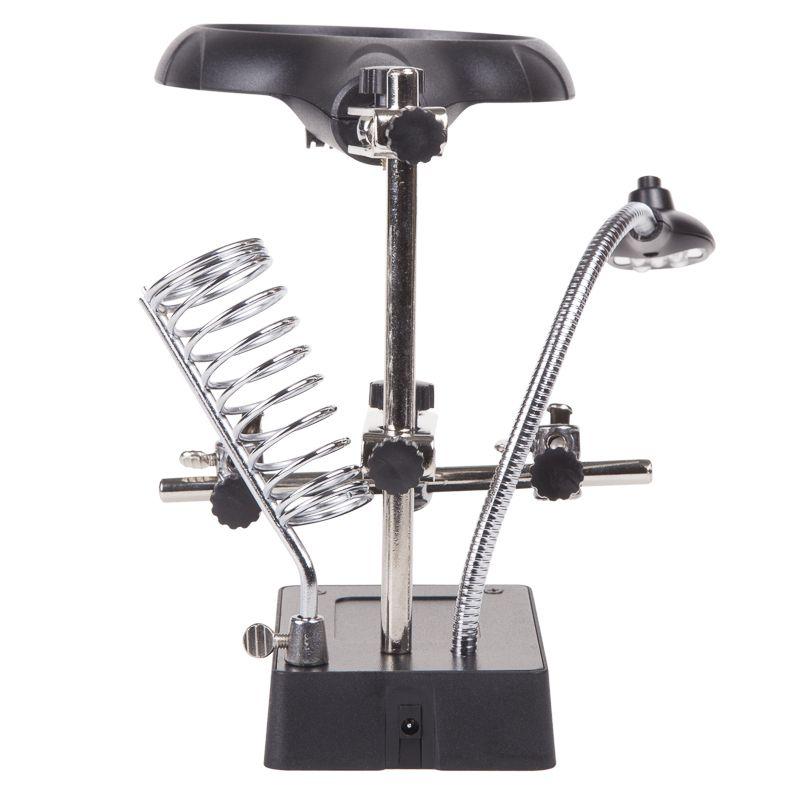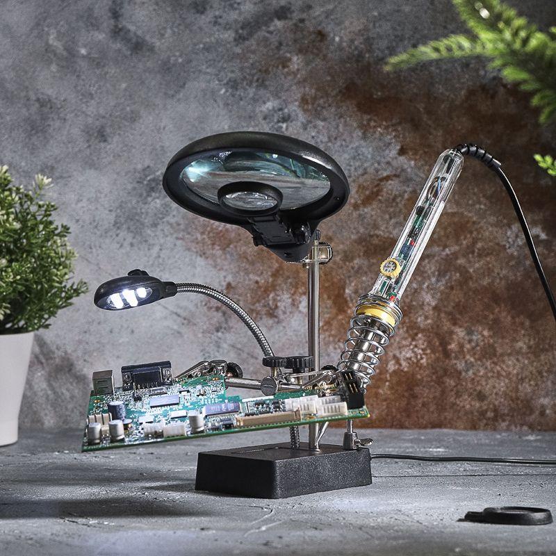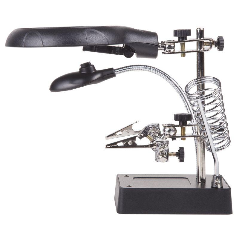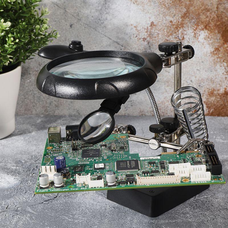 Держатель "третья рука" с лупой х2.5 подставка под паяльник LED подсветка Rexant 12-0250