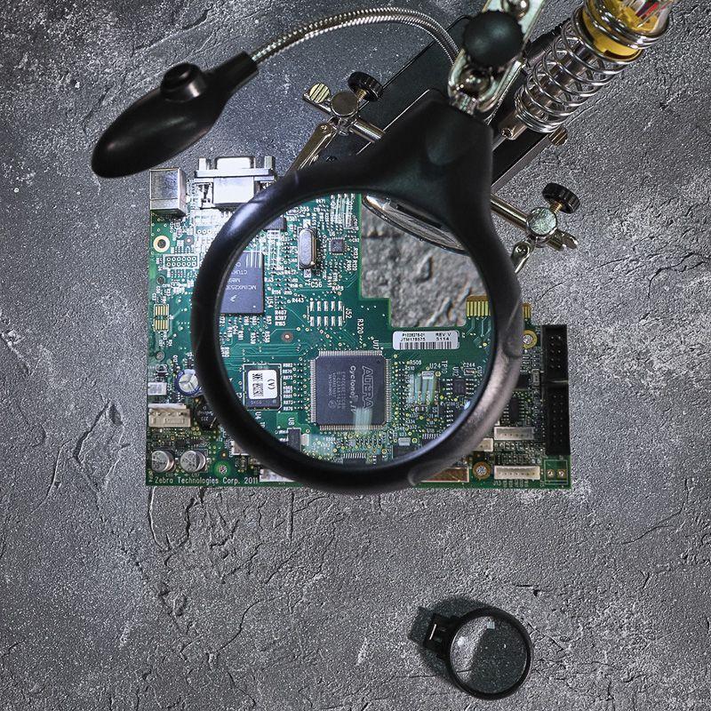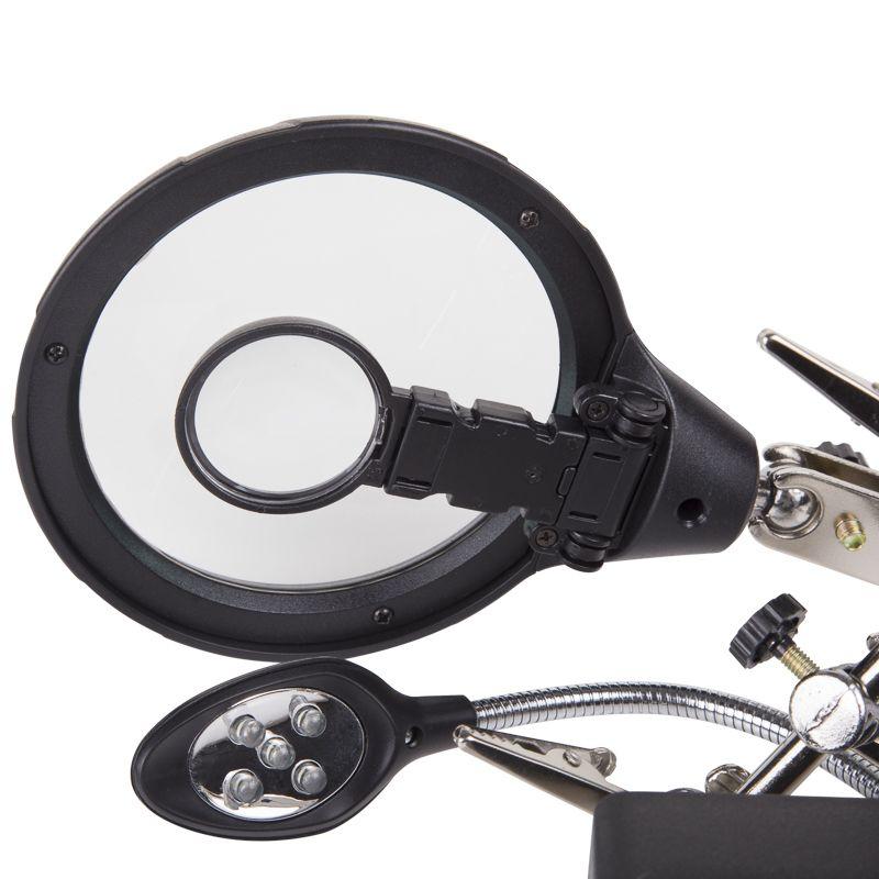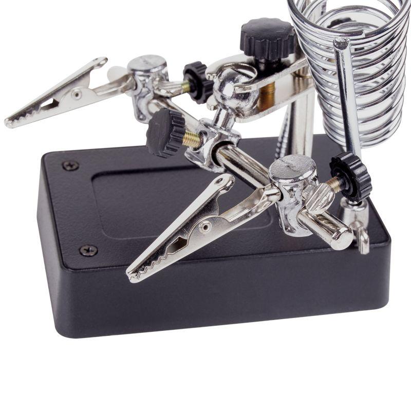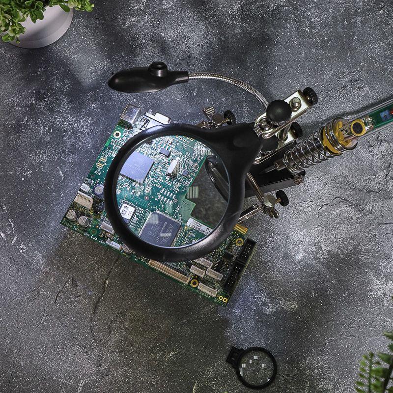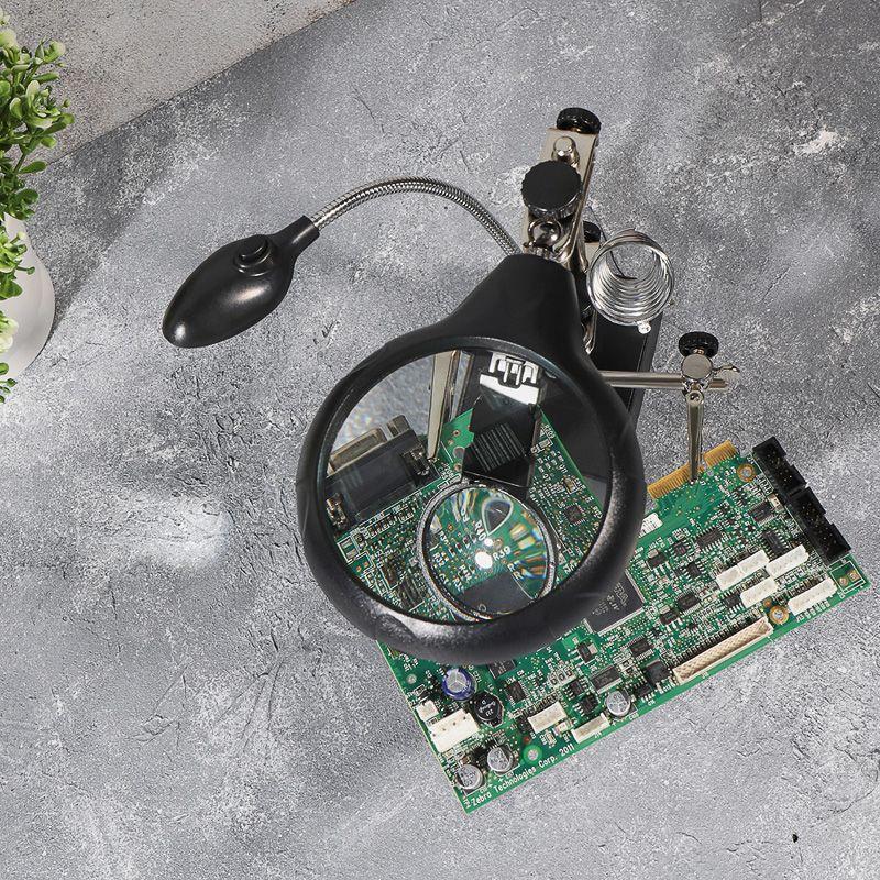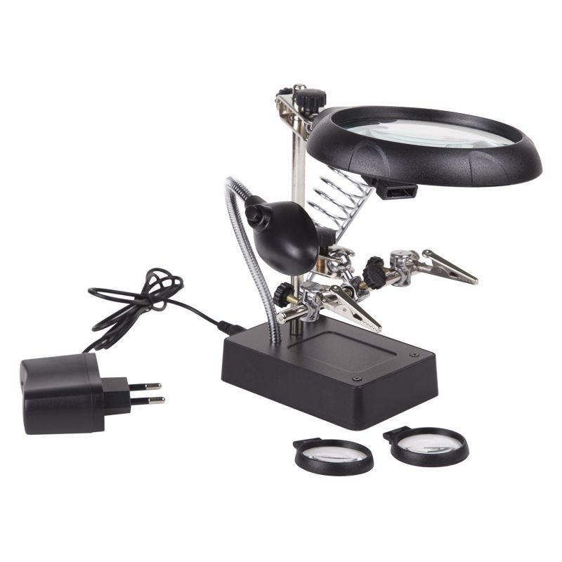 Держатель "третья рука" с лупой х2.5 подставка под паяльник LED подсветка Rexant 12-0250