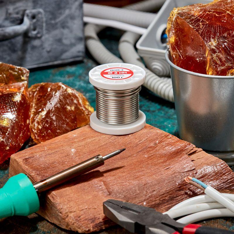 Припой ПОМ-3 100г d2мм (олово 97% медь 3%) бессвинцовый ГОСТ 21931-76 катушка Rexant 09-3503