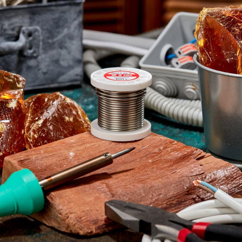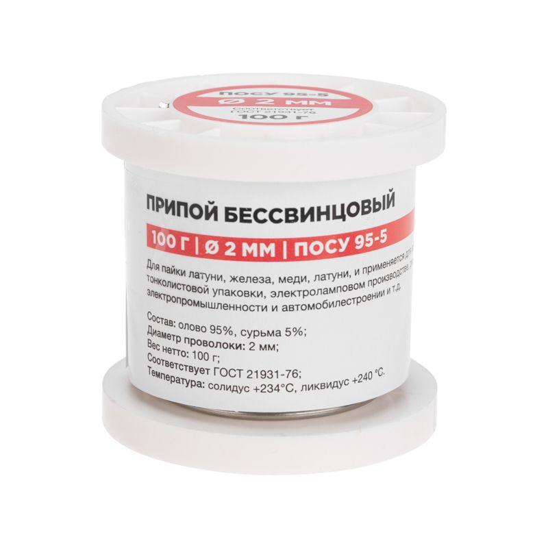 Припой ПОСу 95-5 100г d2мм (олово 95% сурьма 5%) бессвинцовый ГОСТ 21931-76 катушка Rexant 09-3513