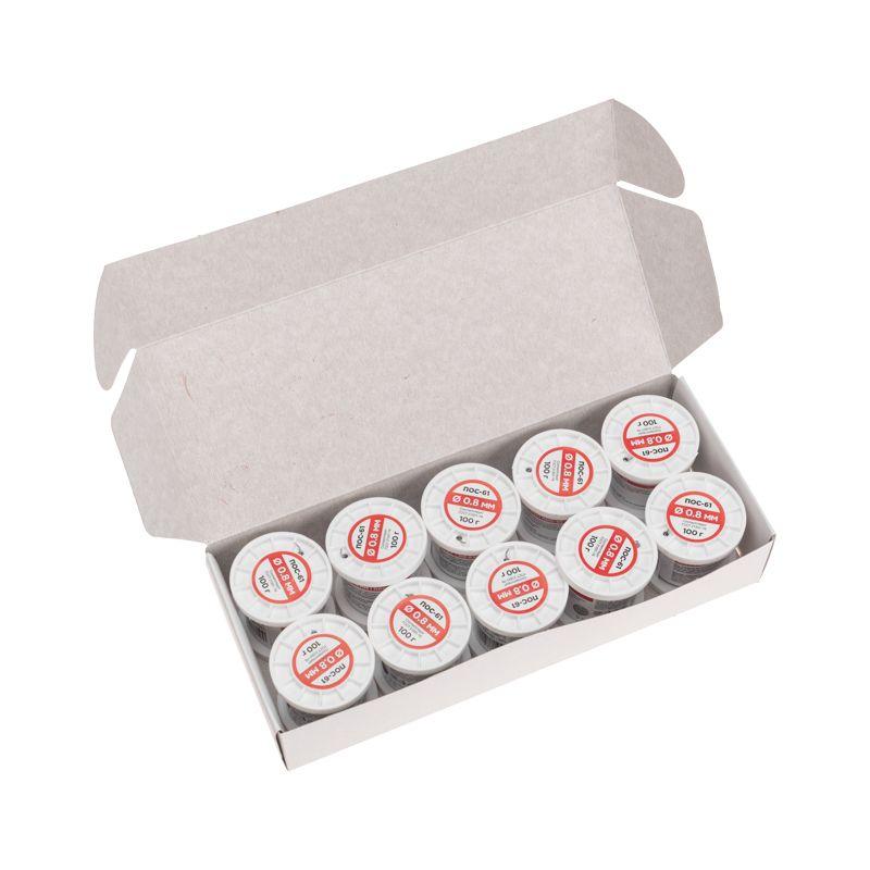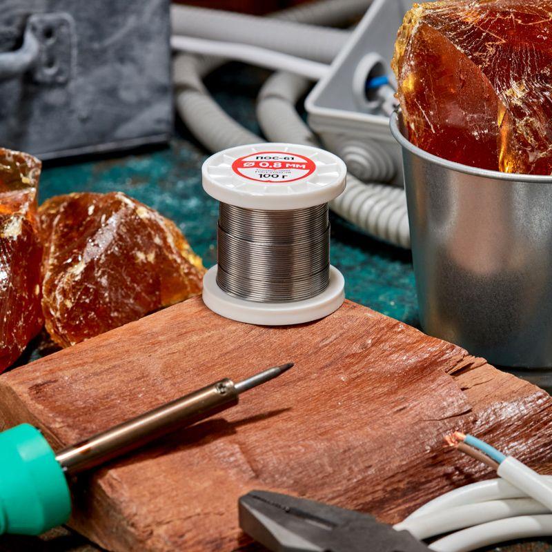 Припой с канифолью ПОС-61 100г d0.8мм (олово 61% свинец 39%) катушка Rexant 09-3170
