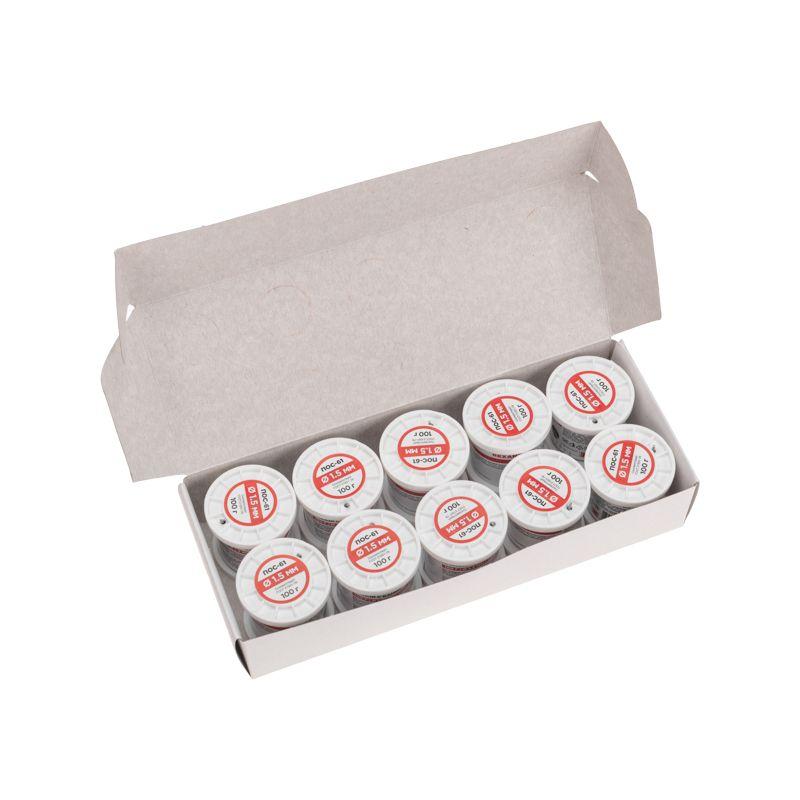 Припой с канифолью ПОС-61 100г d1.5мм (олово 61% свинец 39%) катушка Rexant 09-3172