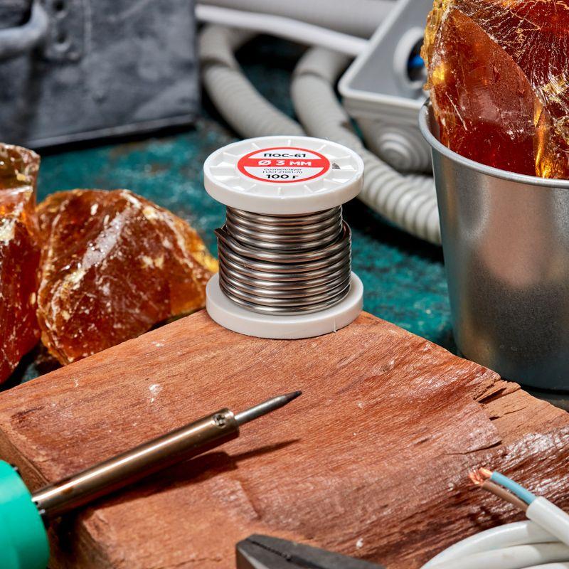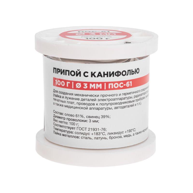 Припой с канифолью ПОС-61 100г d3мм (олово 61% свинец 39%) катушка Rexant 09-3174