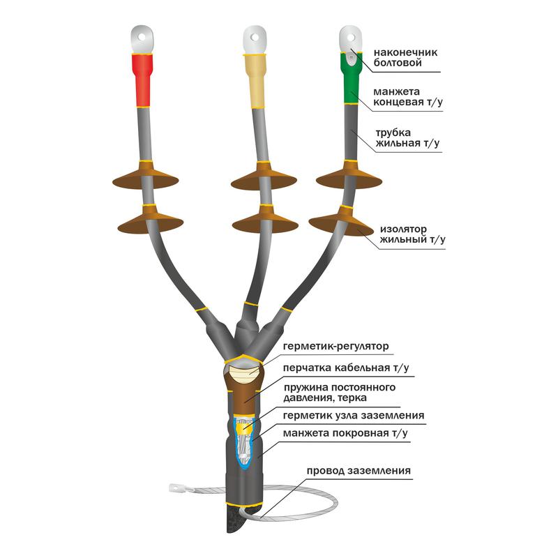 Муфта кабельная концевая наружн. установки 10кВ КНТпН 3х(70-120мм) с болт. наконечн. Нева-Транс Комплект 22020121