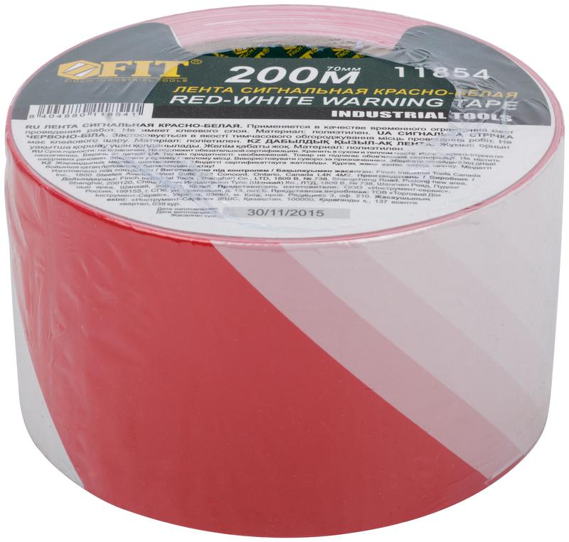 Лента сигнальная 70ммх200м красн.-бел. FIT 11854