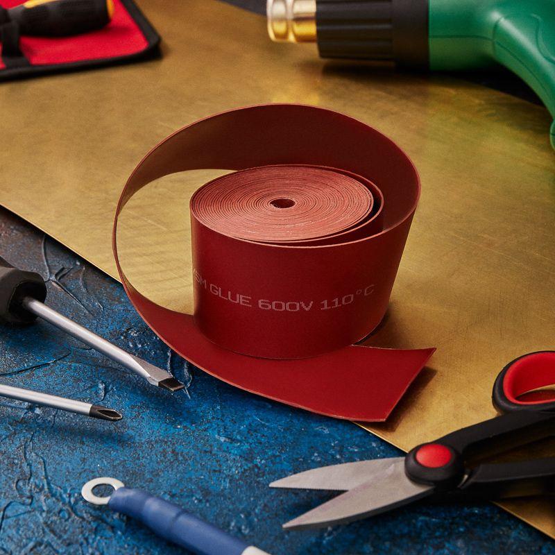Лента термоус. ТЛ-0.8 50мм 5м с клеевым слоем красн. Rexant 48-9014
