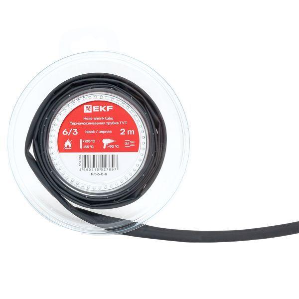 Трубка термоусадочная ТУТ нг 6/3 черн. ролик 2 м EKF tut-6-b-b