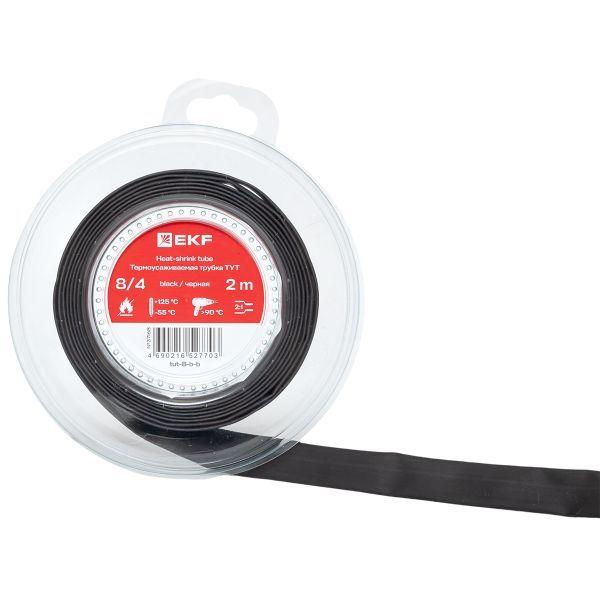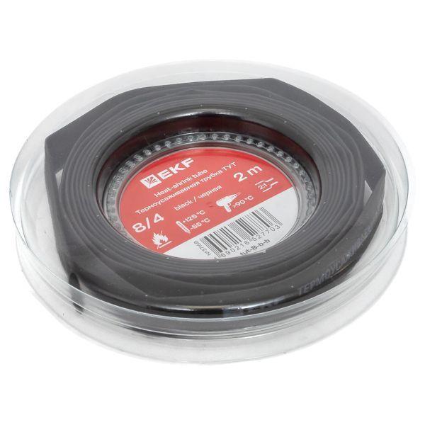 Трубка термоусадочная ТУТ нг 8/4 черн. ролик 2 м EKF tut-8-b-b