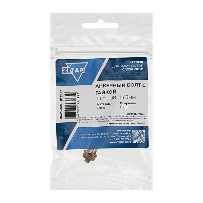 Болт анкерный с гайкой 8х65 пакет Tech-Krep 103917