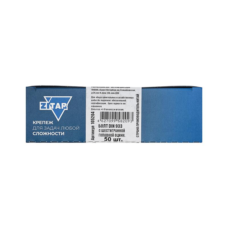 Болт DIN933 с шестигранной головкой М6х40 оцинк. (уп.50шт) Tech-KREP 105204