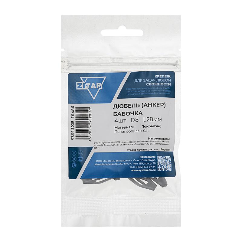 Дюбель анкер "бабочка" 8х28 полипропилен (уп.4шт) Tech-Krep/Zitar 111486