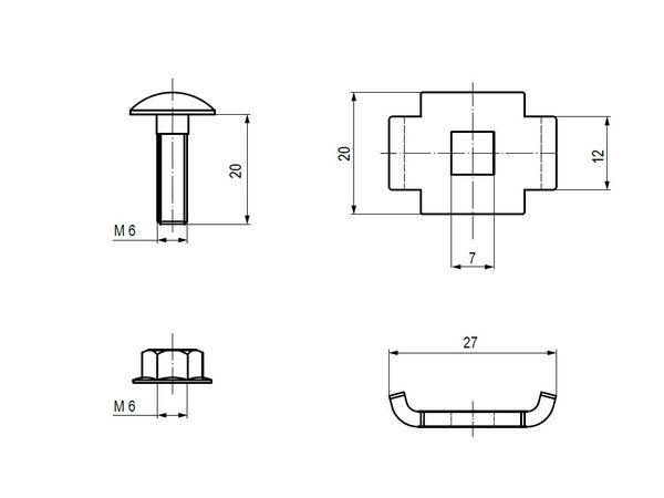 Комплект винтовой соединительный двойной 6x20 (Винт М6+гайка) (уп.50шт) EKF vckd6x20
