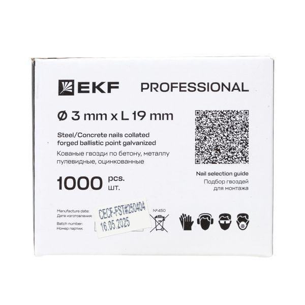 Гвозди для монтажного пистолета по бетону металлу кирпичу (тип CN) d2.7мм дл.19мм (уп.1000шт) Expert EKF cpn-2719bg