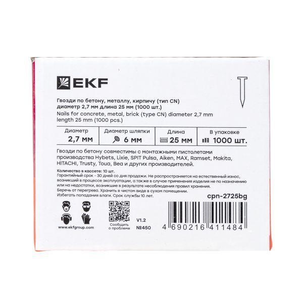 Гвозди для монтажного пистолета по бетону металлу кирпичу (тип CN) d2.7мм дл.25мм (уп.1000шт) Expert EKF cpn-2725bg
