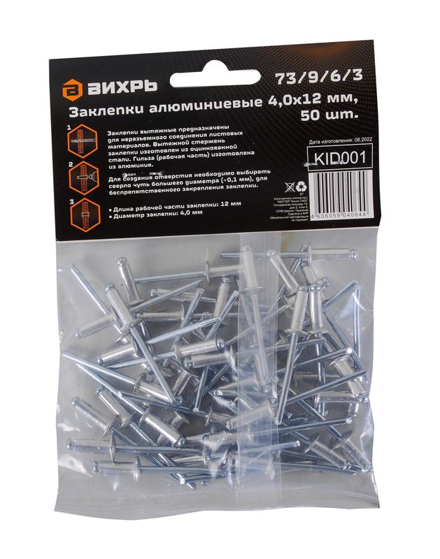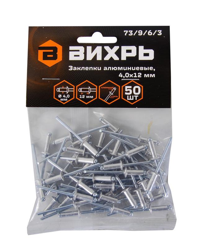 Заклепка 4.0х12 алюм. (уп.50шт) Вихрь 73/9/6/3